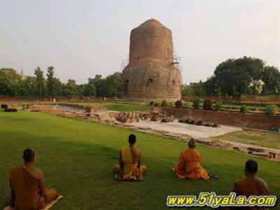 鹿野苑,即 Sārnāth,曾名為 Mrigadava、Rishipattana、Isipatana,位于印度北方邦瓦拉那西以北約10公里處,是釋迦牟尼成佛后初轉(zhuǎn)法輪處,佛教的最初僧團(tuán)也在此成立。鹿野苑是佛教在古印度的四大圣地之一。Mrigadava 意為鹿園;Isipatana 常見(jiàn)于巴利藏,意為圣者來(lái)臨之地。Sārnāth 源自 Sāranganātha,意為鹿王。在一個(gè)佛教典故中,菩薩化現(xiàn)為鹿王,為了保護(hù)鹿群,將自己獻(xiàn)給國(guó)王,國(guó)王也因此感動(dòng),建立了公園,以保護(hù)鹿群。