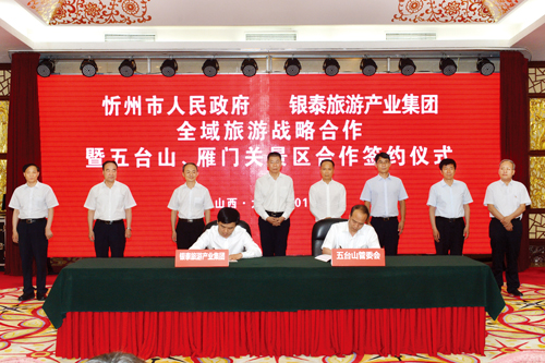 忻州市與銀泰旅游產(chǎn)業(yè)集團(tuán)全域旅游戰(zhàn)略合作暨五臺(tái)山、雁門關(guān)景區(qū)合作協(xié)議簽約儀式現(xiàn)場(chǎng)。宮愛文 攝