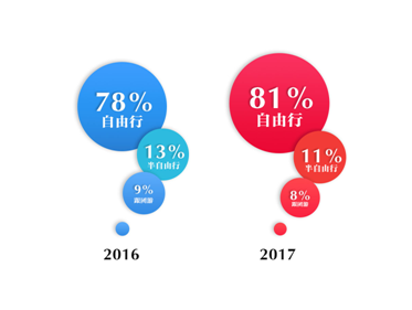 “愛自由”早已是年輕群體的標(biāo)簽,81%的他們更愿意以自由行的方式出境旅行。與此同時,在游玩方式上,“樂高組件式”預(yù)訂越來越受青睞,租車在境外自駕游的游客,2017年比2016年上漲了337%,簡直比自由更自由。