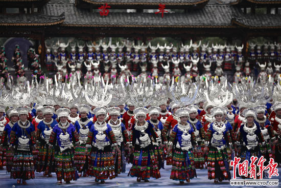 11月23日,來自美國、加拿大、澳大利亞、泰國、法國、老撾等20多個國家和廣西、四川及貴州凱里、興仁、從江等20多個地區(qū)的苗族同胞慶祝團(tuán)隊(duì)齊聚貴州省雷山縣,與16萬雷山苗族人民歡度苗年。整個苗年慶?;顒訉⒊掷m(xù)14天。 中國青年報(bào)·中青在線記者 白皓/攝