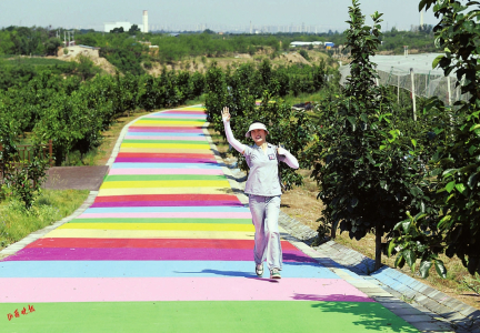 清清蘋果共享農(nóng)莊,青山環(huán)繞,果樹成蔭,青翠的果樹與彩虹步道交相輝映,每一口呼吸都是自然的味道?!拔沂且粋€(gè)‘果三代’,種蘋果是基于一種情懷。”清清蘋果共享農(nóng)莊負(fù)責(zé)人武祝琴說。