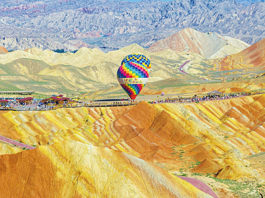 這是8月7日在張掖七彩丹霞景區(qū)拍攝的丹霞景觀(無人機照片)。位于甘肅省張掖市境內(nèi)的張掖七彩丹霞景區(qū)屬張掖國家地質(zhì)公園,是罕見的丹霞地貌與彩色丘陵景觀復(fù)合區(qū)。進入8月以來,七彩丹霞景區(qū)日均游客數(shù)量突破3.5萬人次。