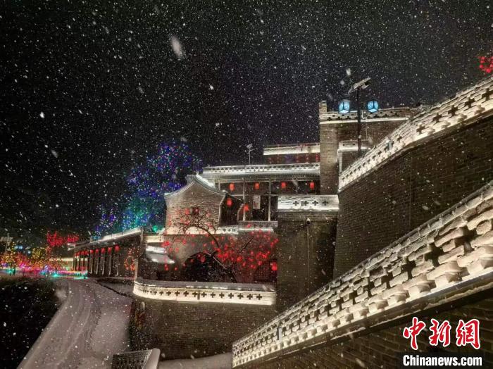 雪花飄落,將古村裝點得如夢似幻。