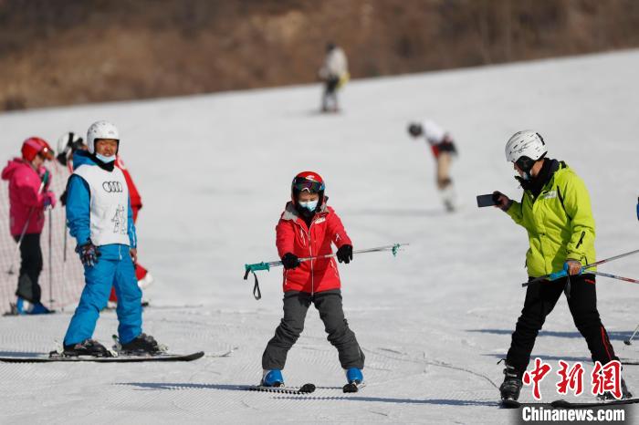 2022年1月4日,北京萬(wàn)科石京龍滑雪場(chǎng),市民在雪場(chǎng)練習(xí)滑雪技巧。 中新社記者 盛佳鵬 攝