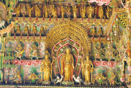 時光流轉(zhuǎn)近400年后,這些彩塑依舊流光溢彩、璀璨奪目、精美動人、完整如新。展翅飛翔的仙鶴、飛動騰躍的蛟龍、純潔的蓮花、富麗的牡丹,以及各種奇花異草,無不使人浮想聯(lián)翩、由衷嘆絕。