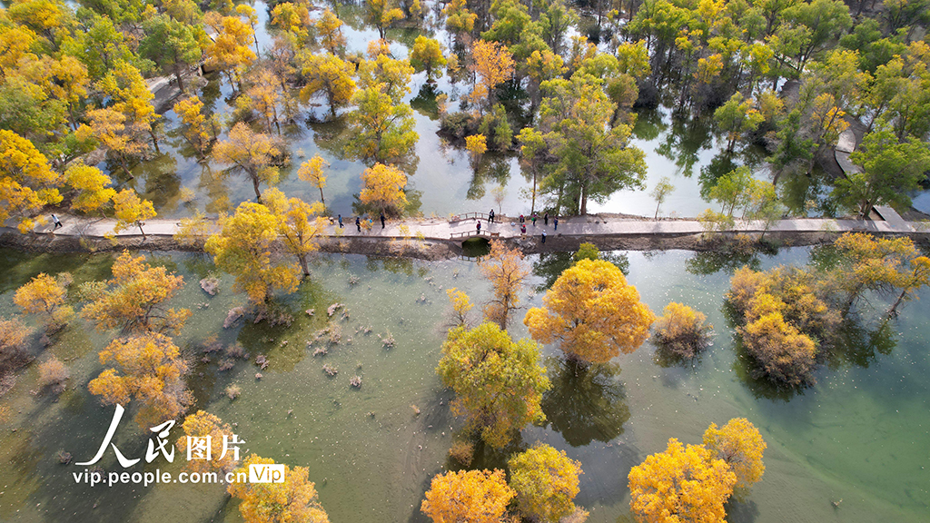 2024年9月27日,甘肅省酒泉市金塔沙漠胡楊林景區(qū)萬(wàn)畝生態(tài)胡楊林層林盡染,景美如畫(huà)。曹紅祖攝(人民圖片網(wǎng))