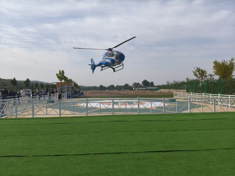 洪洞縣廣勝寺飛行基地,直升機(jī)起飛。洪洞縣國有資本投資運(yùn)營有限公司供圖