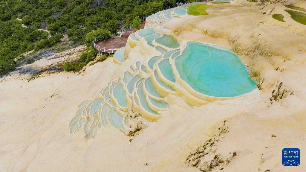 白水臺位于云南省迪慶藏族自治州香格里拉市三壩納西族鄉(xiāng),面積約3平方公里。由于碳酸鈣溶解于泉水,形成了層層疊疊的乳白色“梯田”,這里也被譽為“仙人遺田”。