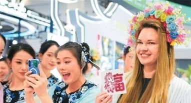 俄羅斯游客維卡·卡列尼娜說:“綁定境外銀行卡就能掃碼點外賣,體驗太棒了?!彼谌齺嗊€享受了“零障礙”的免稅購物:“沒有繁瑣的提貨限制,看中就能直接帶走,購物非常順暢?!?/p>