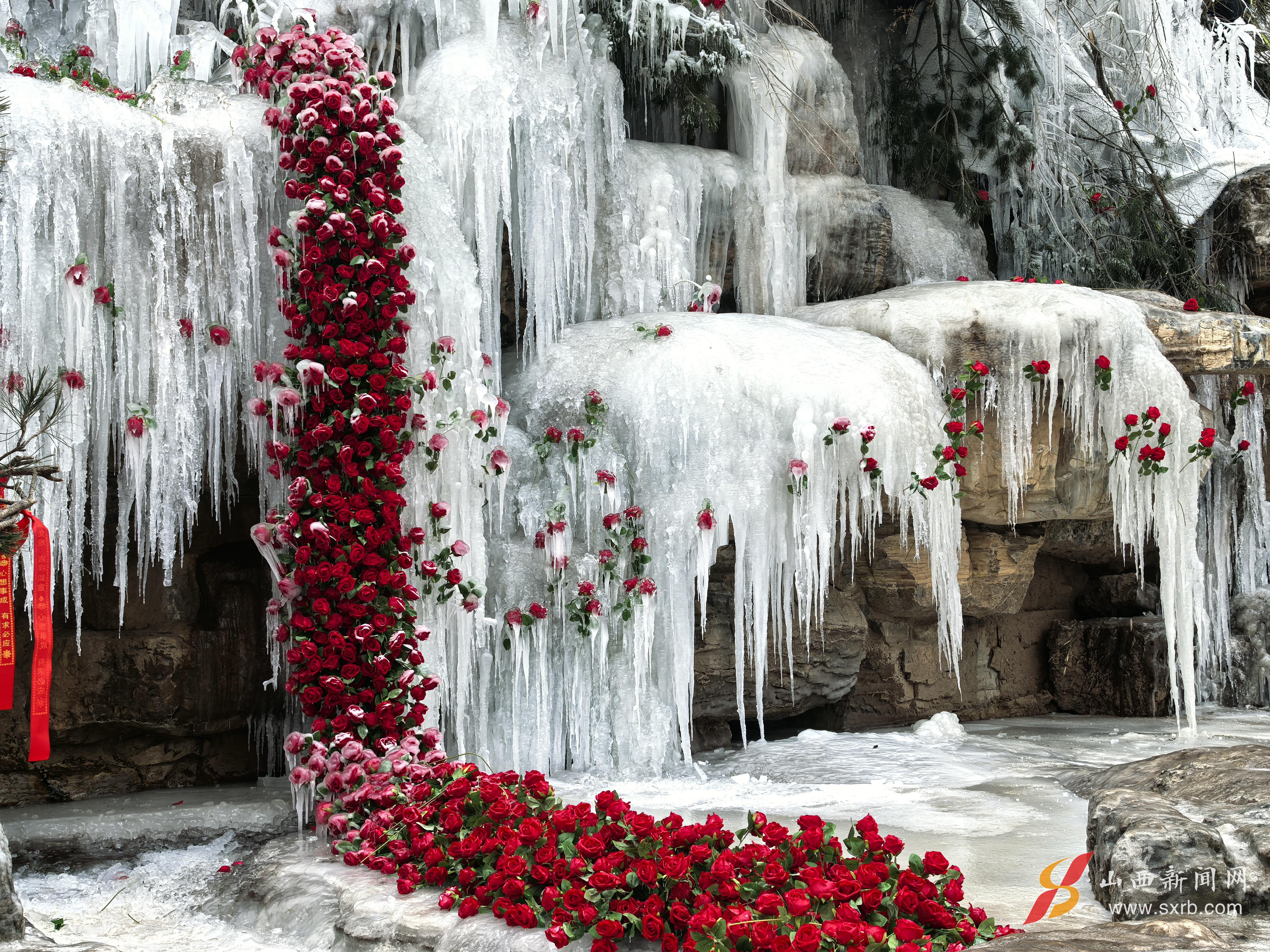 小寒時(shí)節(jié),太原晉源區(qū)蒙山景區(qū)翠影湖畔卻人氣十足。近日,一組由冰瀑與玫瑰共同構(gòu)成的冬日景觀在社交平臺(tái)走紅,迅速成為市民游客爭(zhēng)相前往的“出圈”打卡地。冰的清透與玫瑰的濃烈相輔相成,營(yíng)造出獨(dú)特的視覺美感與浪漫氛圍,被游客稱贊為“神仙組合,隨手一拍即是大片”。