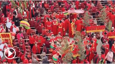 千擔(dān)紅盤列成長陣,鑼鼓聲震徹鄉(xiāng)野,這就是莆田市涵江區(qū)新坡村最具代表性的元宵民俗活動之一——千人擔(dān)盤鬧元宵。活動中,全村按生肖和年齡輪值“福首”,由其牽頭組織,將親朋好友家的擔(dān)盤集中巡游祈福。熱鬧的儀式不僅吸引八方賓客慕名而來,也讓不少僑胞跨越山海返鄉(xiāng)團聚。正月十一,人民日報記者走進新坡村,探訪這場承載鄉(xiāng)情與祝福的元宵盛會。