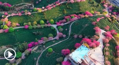 近日,福建漳州臺品櫻花園的櫻花悄然盛放,漫山遍野的櫻花與層層疊疊的茶山交相輝映,粉紅花海點綴翠綠茶壟,構(gòu)成一幅生機勃勃的春日畫卷。