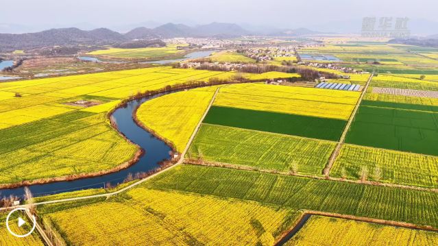 眼下,安徽省池州市東至縣張溪鎮(zhèn)油菜花進(jìn)入盛花期。從空中俯瞰,金色花海如大地鋪就的錦繡絨毯,與青山、村落、溪流相映成趣,勾勒出一幅詩(shī)意盎然的春日田園畫卷。