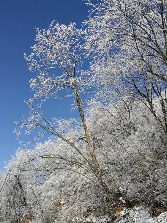 受較強冷空氣影響,秦嶺腹地涼風埡山頂,出現(xiàn)大面積霧凇景觀。玉樹瓊枝,晶瑩剔透,讓涼風埡山頂變得像童話世界一般,美不勝收。 央視記者王志杰 圖片來源:央視新聞微博