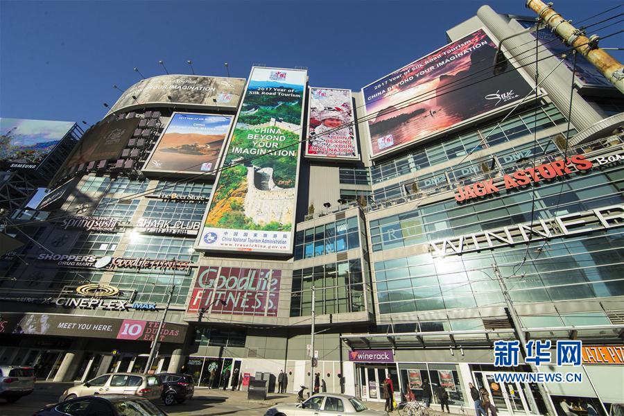 這是1月1日在加拿大多倫多市中心的鄧達(dá)斯廣場拍攝的“美麗中國——2017絲綢之路旅游年”主題宣傳廣告牌。從2016年12月26日起,由中國國家旅游局推出、以“美麗中國——2017絲綢之路旅游年”為主題的大型旅游宣傳廣告在加拿大多倫多市中心鄧達(dá)斯廣場亮相,向人們展示中國美麗而豐富的旅游資源。整個活動將持續(xù)5周。新華社發(fā)(鄒崢攝)