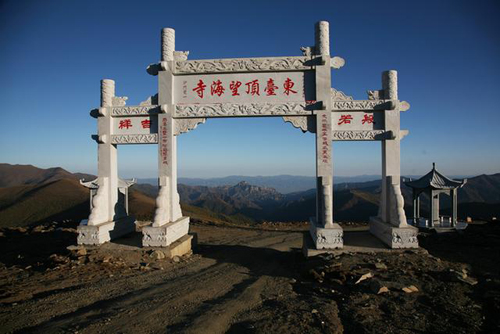 望海峰的盛景在于東觀日出。由于東面再無(wú)大山阻擋,所以人的目力可東眺非常遙遠(yuǎn)的地方。峰頂曾建有望海樓,專門(mén)為觀景而建??上昃靡褮?,1985年重建,為望海寺,內(nèi)供聰明文殊。有史籍記載日出之壯麗景象:“每當(dāng)蒸云寢壑之隙,爽氣澄秋之際,于日出扶桑之時(shí),可望紅日十倍于車輪,紅輪之下,隱隱水光閃爍,若波若鏡,瑰麗非凡。1977年8月,趙樸初先生登東臺(tái)觀日出后乘興填詞《五臺(tái)雜詠·調(diào)寄憶江南》,形象描繪了東臺(tái)日出之勝景: