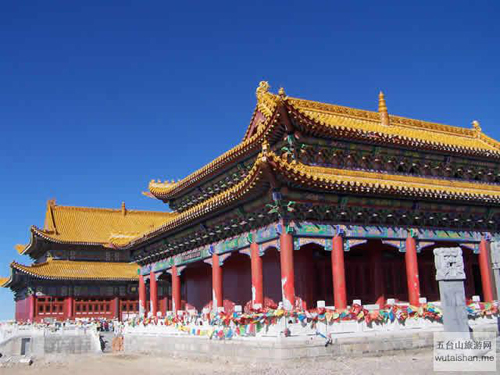五臺山中臺翠巖峰,又名平頂山,海拔2894米,居東、西、南、北四臺的中心,也是四臺的發(fā)脈之祖,臺頂面積也最大?!肚鍥錾街尽吩疲骸皫p巒雄曠,翠靄浮空”。其山勢酷似一頭挺立的雄獅。臺頂寺院名作演教寺,內(nèi)供孺童文殊。