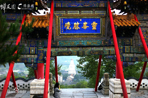 沿一百零八級石階登高,按照佛家的說法,就把人間的一百零八種煩惱踩在腳下了。置身牌樓下,手撫門柱,回身四望,遠處的山,山上的云,近處的清水河,雄壯多姿的寺廟建筑群,都收入眼中,深感“靈峰勝境”四個字點得妙。這里,是很好的登高覽勝的觀景點。一九四八年春,黨中央機關(guān)從延安開赴河北省西柏坡,途中路過五臺山,陳毅同志作詩道:“本不游五臺,迂道時日緊,至今有余歡,曾踏菩薩頂?!?/p>