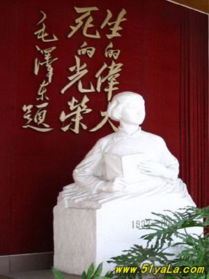 劉胡蘭(1930-1947),中國共產(chǎn)黨黨員,1946年參加革命,1947年山西軍閥閻錫山的軍隊突然襲擊時被捕,英勇不屈,在敵人鍘刀下壯烈犧牲。毛澤東曾在當(dāng)時《晉綏日報》上為之題詞:“生的偉大,死的光榮?!?/p>
