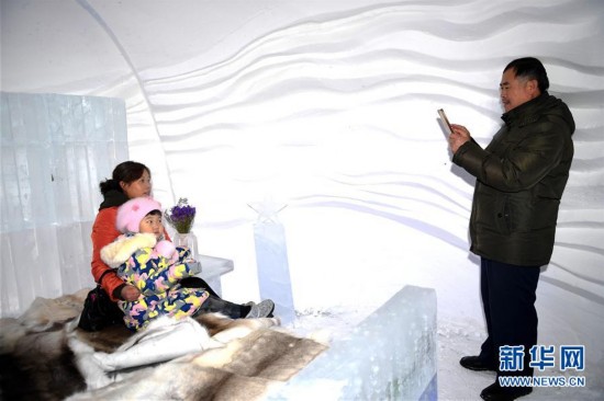 12月24日,在內(nèi)蒙古根河市敖魯古雅鄂溫克民族鄉(xiāng),游客在冰雪酒店里拍照留念。當(dāng)日,第五屆中國(guó)冷極節(jié)在內(nèi)蒙古自治區(qū)根河市開(kāi)幕。根河市素稱“中國(guó)冷極”,當(dāng)?shù)乩帽┵Y源,并結(jié)合獨(dú)特的鄂溫克民族風(fēng)情,打造冬季旅游項(xiàng)目,為游客帶來(lái)不一樣的冰雪體驗(yàn)。新華社記者劉磊攝