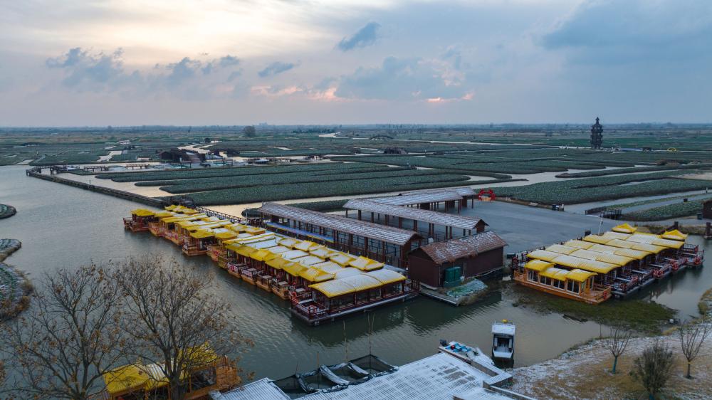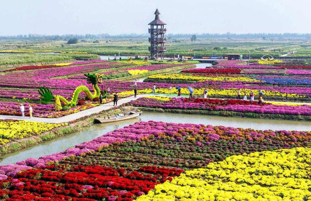 ??2025年10月13日,游客在江蘇省興化市千垛景區(qū)賞菊游玩(無人機照片)。新華社發(fā)(周社根 攝) 一號水路的蘆花隨風搖曳 如白雪覆蓋水面 古樸的沙溝古鎮(zhèn)燈籠高掛 約上三五好友飲一杯老茶館里的暖茶 冬日的寒意便在這靜謐之中被驅散了