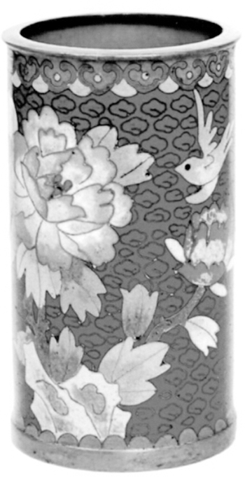 瓷制筆筒始于明代嘉靖、萬(wàn)歷年間,天啟、崇禎時(shí)期的瓷筆筒生產(chǎn)量較大,以青花為主,紋飾有植物、動(dòng)物、人物等。其形制為直口、平底、腰微束,器口器足處有暗刻紋飾為崇禎瓷筆筒的典型特征。