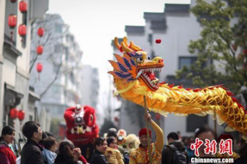2015年農(nóng)歷二月初二,民間舞龍隊(duì)在南京城南老街舞龍。泱波 攝 吃炸糕謂之“吃龍膽” “圍倉(cāng)”祈求豐收 由于龍的各種吉祥寓意,在“二月二”這一天,不少飲食也都被加上了“龍”的頭銜:吃水餃叫吃“龍耳”,吃面條叫食“龍須”,吃米飯叫吃“龍子”,吃餛飩叫吃“龍眼”等,伴隨著春回大地的暖意,各地人民將這些習(xí)俗演繹的有聲有色。 “有的地方過春龍節(jié),有‘引龍回’的習(xí)俗。在炕頭、水缸等地方,用灰灑在地面上,一直綿延到屋子外邊來,防止百蟲侵害?!备呶〗榻B道。 此外,北京天橋民俗文化協(xié)會(huì)常務(wù)副會(huì)長(zhǎng)趙興力則援引《帝京景物略》中的一段話解釋“引龍”習(xí)俗。他表示,“二月二”正是驚蟄前后,百蟲蠢動(dòng),疫病易生,人們也期盼“龍?zhí)ь^”出來鎮(zhèn)住毒害蟲。 “也是為了求吉利,民間還有‘敲財(cái)’習(xí)俗。農(nóng)歷二月初二晚上,孩子們會(huì)用準(zhǔn)備好的小木棍敲打門框,同時(shí)嘴里念念有詞‘二月二。敲門枕,金子銀子往家滾;二月二,敲門框,金子銀子往家扛’?!备呶≌f。 農(nóng)業(yè)社會(huì)尤其重視農(nóng)業(yè)生產(chǎn),在“二月二”這天,農(nóng)民還會(huì)“打囤圍倉(cāng)”,同時(shí)說著吉祥話,比如“二月二龍?zhí)ь^,大囤尖小囤流”,目的是為了祈求豐收。 “具體到飲食上,除了之前介紹的餃子、餛飩之外,人們還會(huì)在這一天吃豬頭肉、豬下水等等,近些年又興起吃炸糕的習(xí)俗,謂之‘吃龍膽’。”高巍笑著表示,無論是哪種習(xí)俗,無非都是為了除害辟邪,體現(xiàn)了人們追求吉祥的心理。 (責(zé)任編輯:王辰安) |