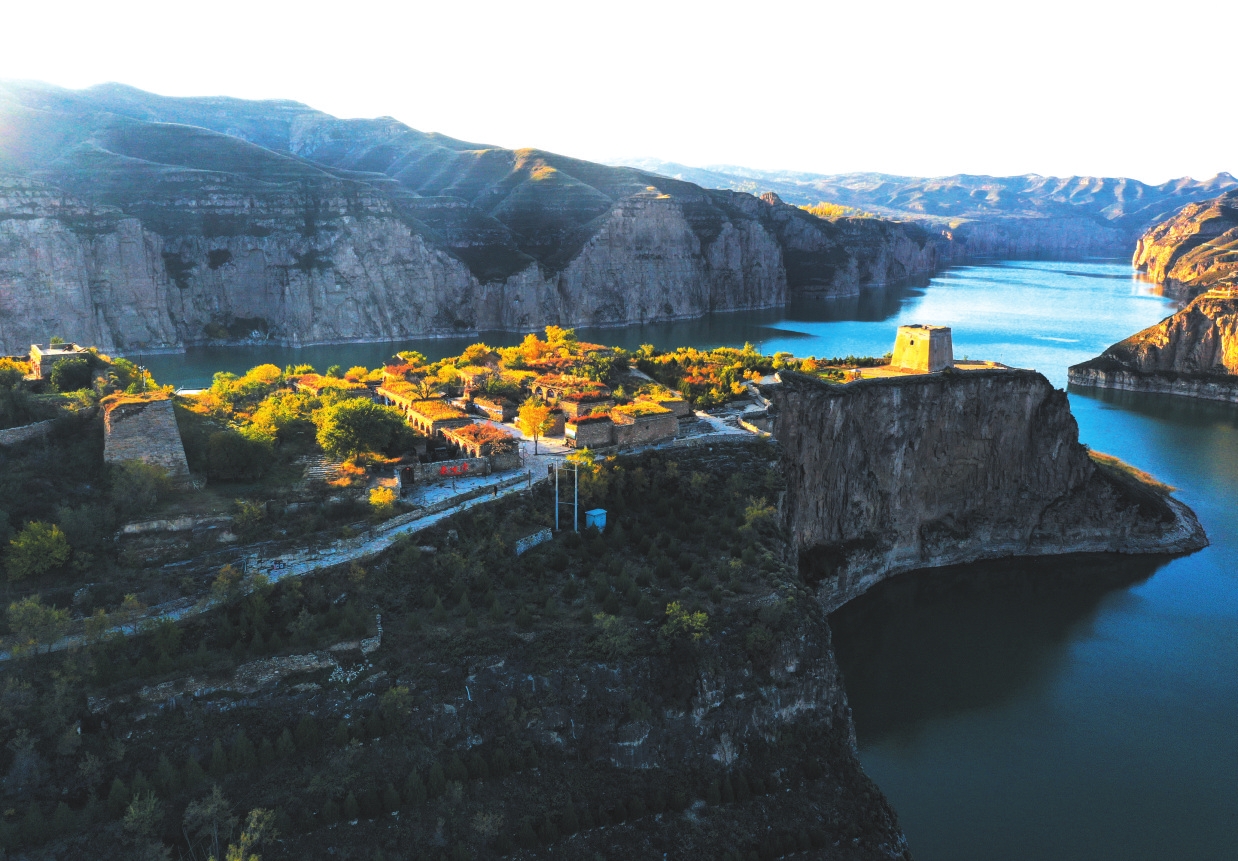2015年的夏天,我又一次來(lái)到老牛灣,105米高的萬(wàn)家寨水電大壩飛跨晉蒙,黃河水在絕壁中安靜了、變綠了。老牛灣村前的小河倒灌進(jìn)了黃河水,一個(gè)灣成了兩個(gè)灣,團(tuán)團(tuán)地圍住了山村,又好似老牛彎出了兩個(gè)碧綠的牛角,太漂亮了。老鄉(xiāng)們說:“有企業(yè)來(lái)開發(fā)道路、景區(qū)了,也有北京游客開車來(lái)游玩了,拍照的多,照幾張相就走了?!蓖侨匀粴埰频拈T樓和石板院房,我不知該說什么、能說什么。