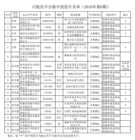 人民網(wǎng)北京5月29日電 (董童)28日,山東省藥監(jiān)局發(fā)布《關(guān)于17批次中藥飲片質(zhì)量抽檢不合格的通告(2018年第6期)》(以下簡(jiǎn)稱(chēng)《通告》)。經(jīng)淄博市食品藥品檢驗(yàn)研究院檢驗(yàn),標(biāo)示為云南白藥集團(tuán)股份有限公司中藥飲片分公司等15家企業(yè)生產(chǎn)的17批次中藥飲片,經(jīng)抽檢質(zhì)量不符合標(biāo)準(zhǔn)規(guī)定。 山東省藥監(jiān)局表示,對(duì)不合格產(chǎn)品已采取查封、扣押、暫停銷(xiāo)售、產(chǎn)品召回等控制措施,并依據(jù)相關(guān)法律法規(guī)對(duì)有關(guān)生產(chǎn)企業(yè)、被抽樣單位進(jìn)行了立案查處。對(duì)于不合格產(chǎn)品及相應(yīng)企業(yè)、單位,相關(guān)市藥監(jiān)局要加強(qiáng)監(jiān)管,督促其查明問(wèn)題原因,制定落實(shí)整改措施,切實(shí)消除風(fēng)險(xiǎn)隱患。 附不合格產(chǎn)品名單: