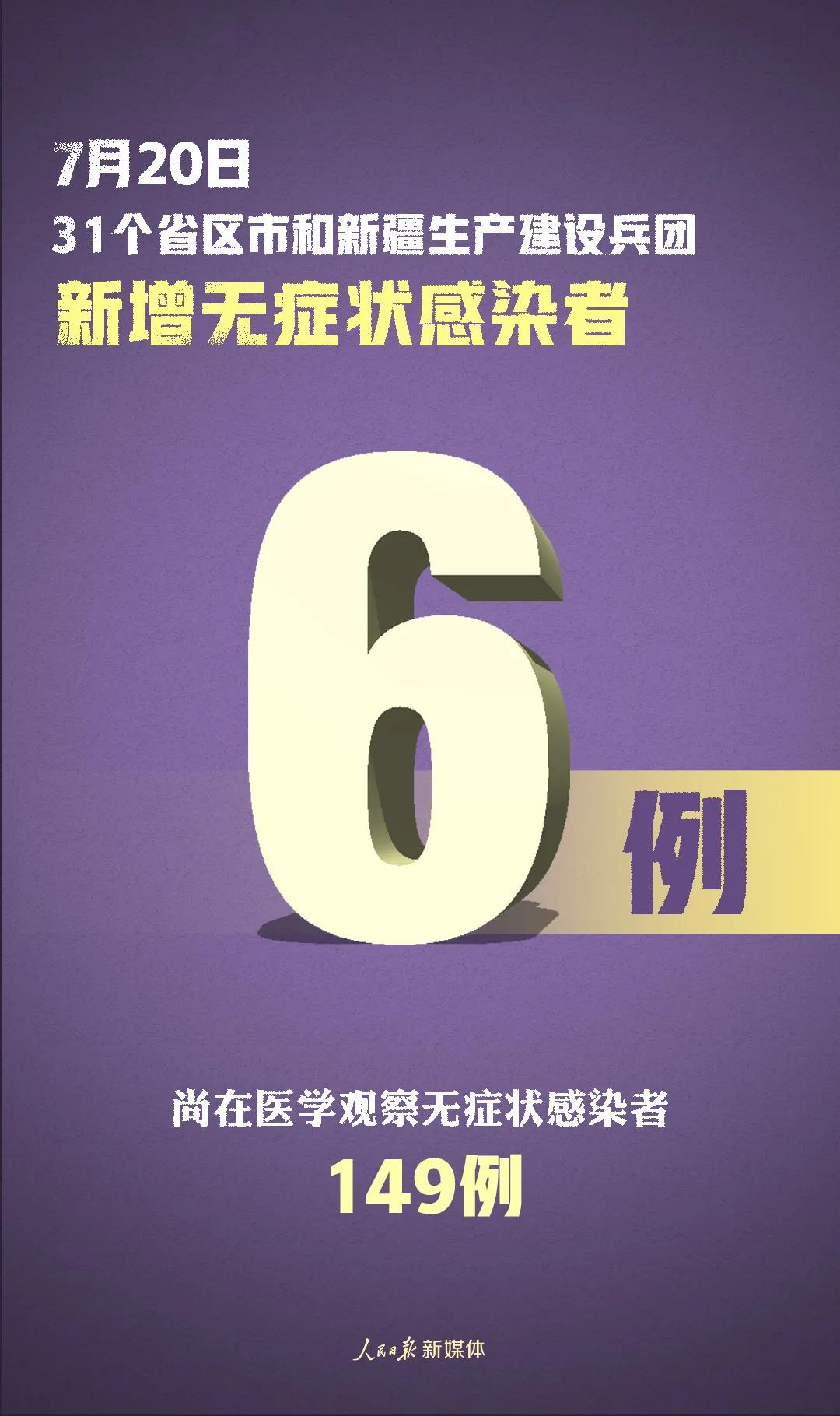 31個?。ㄗ灾螀^(qū)、直轄市)和新疆生產(chǎn)建設(shè)兵團(tuán)報告新增無癥狀感染者6例(境外輸入1例);當(dāng)日轉(zhuǎn)為確診病例1例(境外輸入1例);當(dāng)日解除醫(yī)學(xué)觀察10例(境外輸入7例);尚在醫(yī)學(xué)觀察無癥狀感染者149例(境外輸入80例)。