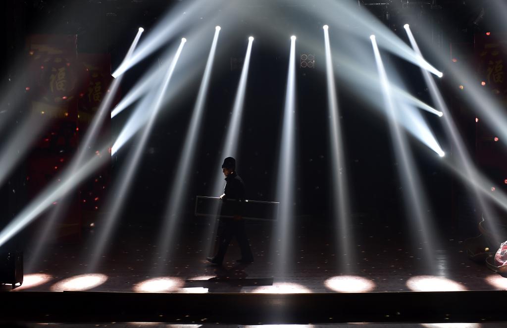 ↑1月3日,在山西省渾源縣貧困山區(qū)合唱團,一名工作人員在搬運設(shè)備為文藝下鄉(xiāng)匯演做準(zhǔn)備。