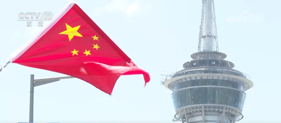 在澳門的主要街道、出入境口岸等地,鮮艷的五星紅旗迎風飄揚,在藍天、綠樹的映襯下,構(gòu)成了一道道亮麗的風景線,為城市增添了喜慶祥和的國慶氛圍。