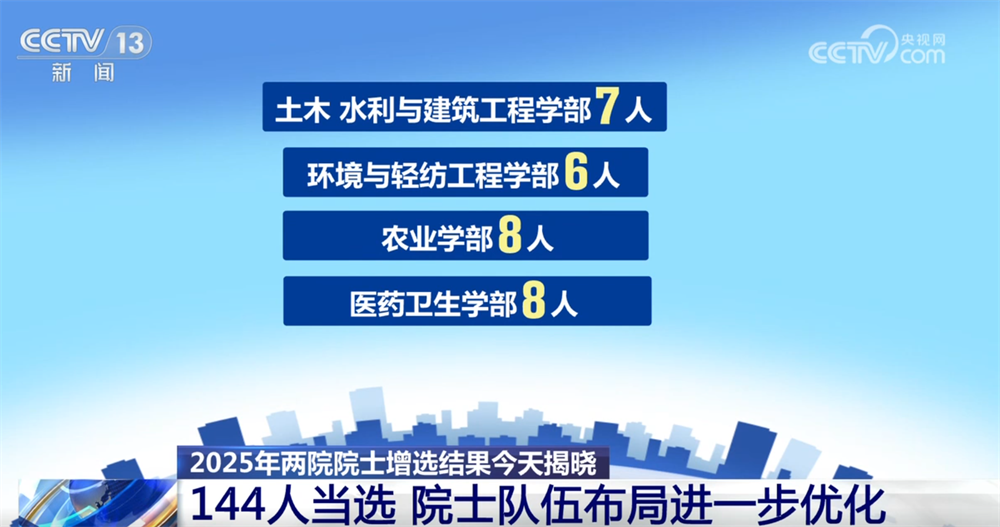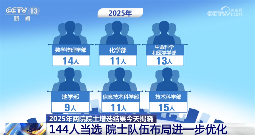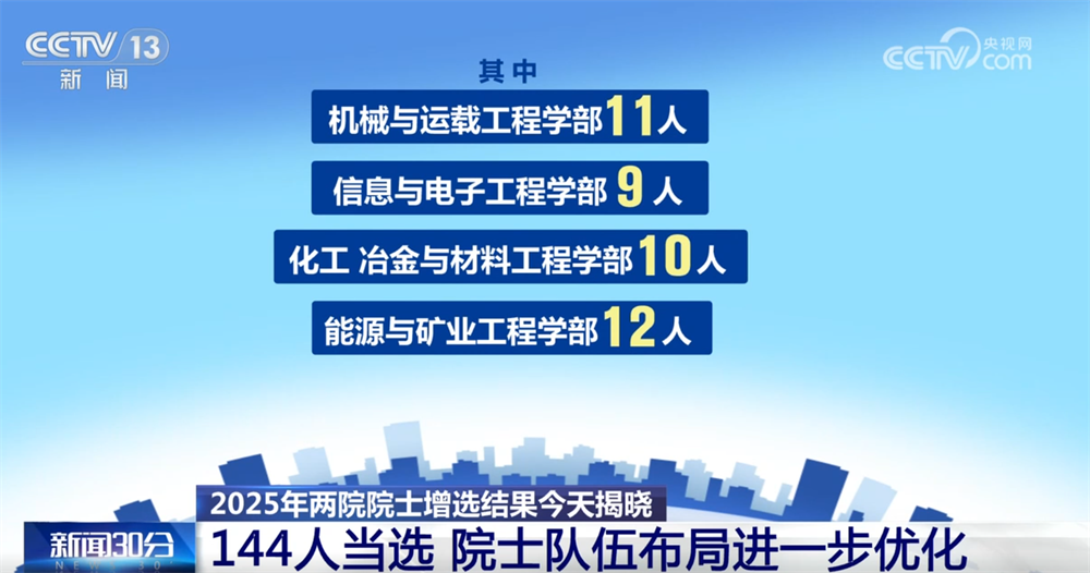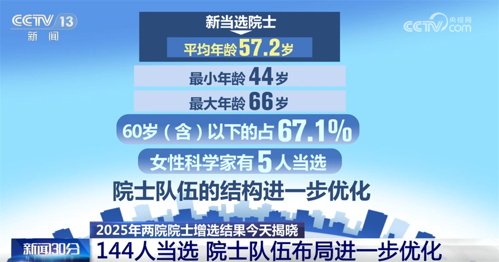 央視網(wǎng)消息:11月21日,2025年兩院院士增選結(jié)果正式揭曉,共有144人當選,院士隊伍的年齡結(jié)構(gòu)、學(xué)科、地區(qū)和行業(yè)布局進一步優(yōu)化。