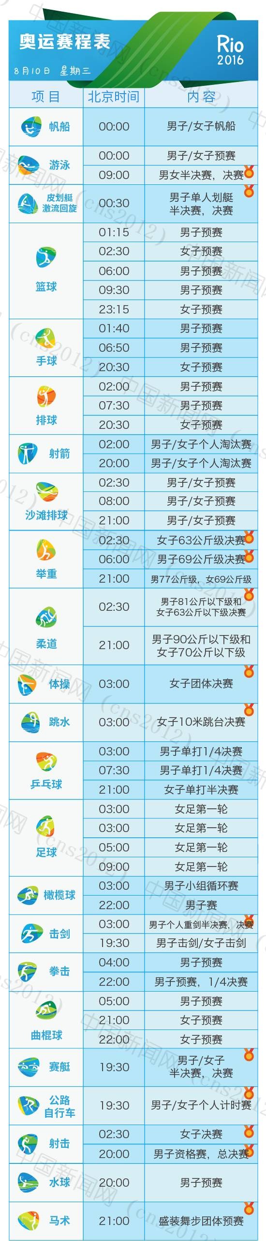 里約奧運(yùn)會(huì)完整賽程表