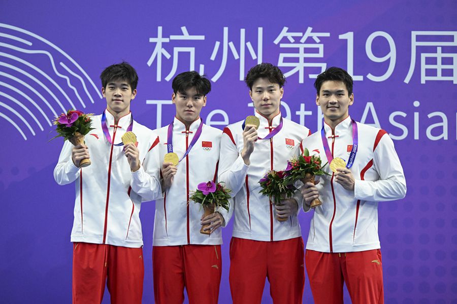 9月26日,在杭州亞運會男子4×100米混合泳接力決賽中,中國隊奪得金牌,同時以3分27秒01的成績刷新亞洲紀(jì)錄。