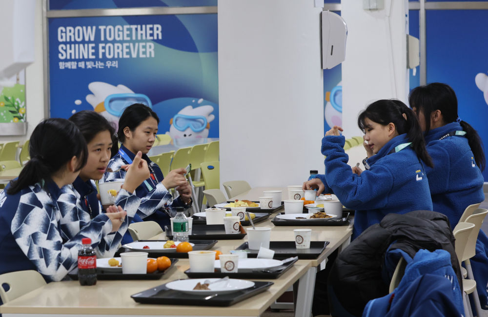 1月18日,中國運(yùn)動(dòng)員在冬青奧村內(nèi)就餐。新華社記者 姚琪琳 攝