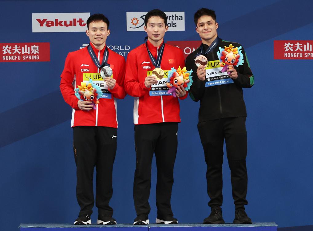 男單3米板較量中,傷愈復(fù)出的奧運(yùn)冠軍謝思埸在預(yù)賽和半決賽處于領(lǐng)跑態(tài)勢(shì),衛(wèi)冕冠軍王宗源在決賽發(fā)揮更加出色,6跳中有5跳拿到最高分,最終以538.70分摘金,實(shí)現(xiàn)世錦賽該項(xiàng)目“三連冠”。這也是王宗源職業(yè)生涯第8枚世錦賽金牌。謝思埸以516.10分摘得銀牌,墨西哥選手奧爾韋拉-伊瓦拉獲得銅牌。