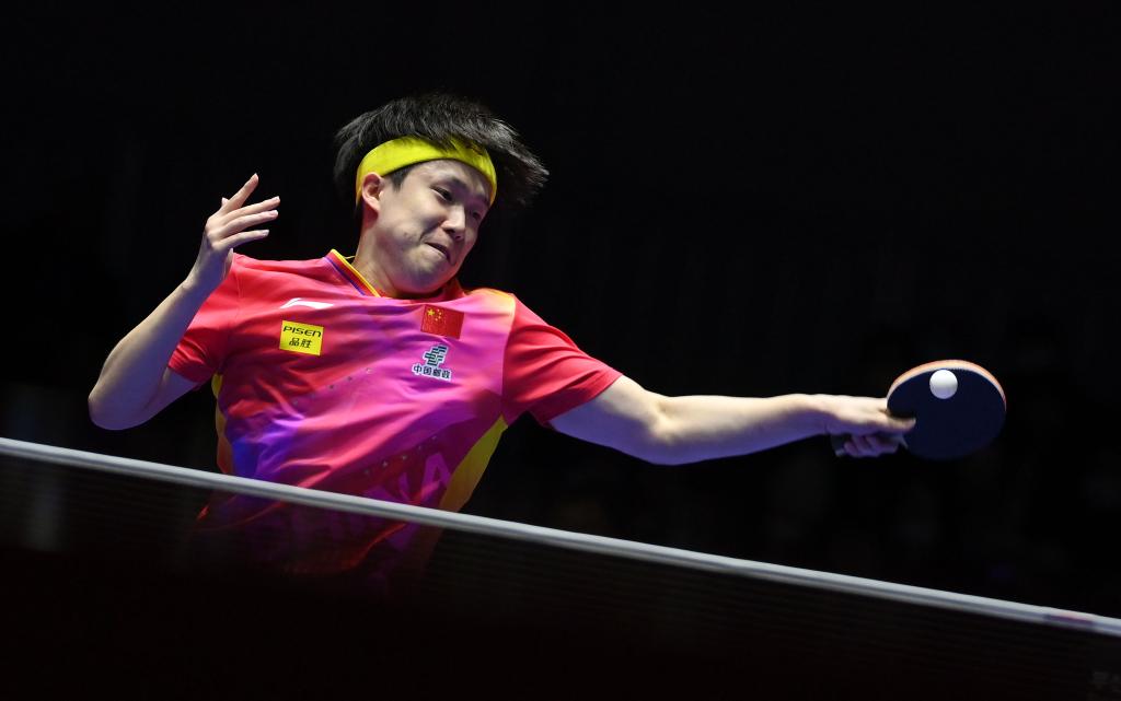 2月21日,中國隊(duì)球員王楚欽在第一盤比賽中回球。新華社記者 陶希夷 攝