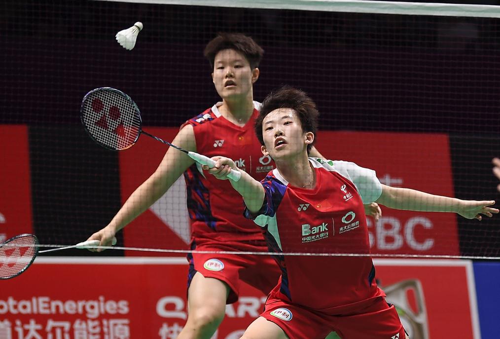 4月28日,中國隊組合劉圣書/張殊賢(前)在女雙比賽中。新華社記者 侯昭康 攝