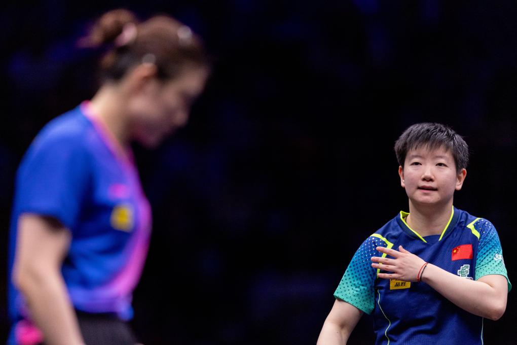 兩場(chǎng)女單半決賽在國(guó)乒隊(duì)員之間進(jìn)行,王曼昱對(duì)陣王藝迪,陳夢(mèng)對(duì)陣孫穎莎,王曼昱、孫穎莎分別以4:0和4:2勝出。