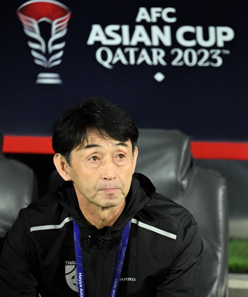 1月21日,泰國(guó)隊(duì)主教練石井正忠在男足亞洲杯小組賽F組泰國(guó)隊(duì)對(duì)陣阿曼隊(duì)的比賽前。新華社記者 孫凡越 攝