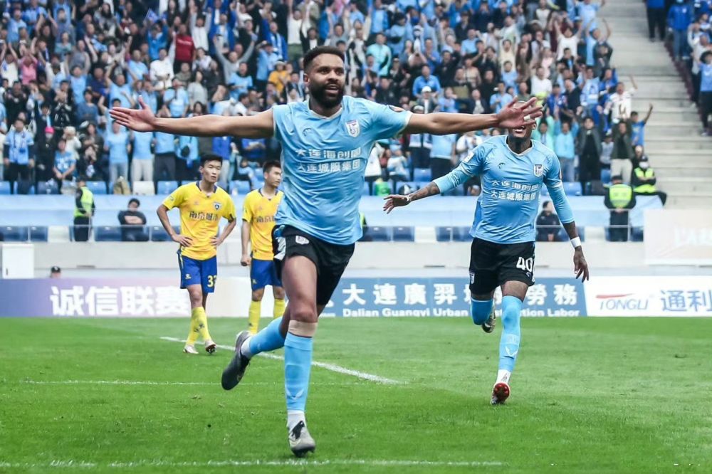 開場后,雙方展開激烈爭奪。上半場補(bǔ)時(shí)階段,大連英博隊(duì)外援科特尼克送出助攻,卡蘭加抓住機(jī)會(huì)頭球破門,為主隊(duì)取得領(lǐng)先。