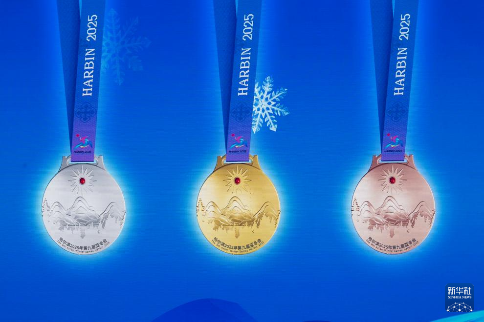 亞冬會獎牌“競速精神”同日發(fā)布。獎牌正面融合賽道流線和亞冬會會徽,以動態(tài)沖擊力凝煉出運動健兒馳騁賽場的矯健身姿,展現(xiàn)出競技體育的力與美;賽道的曲線造型融入哈爾濱大劇院的形象,具有獨特的城市美學特征。