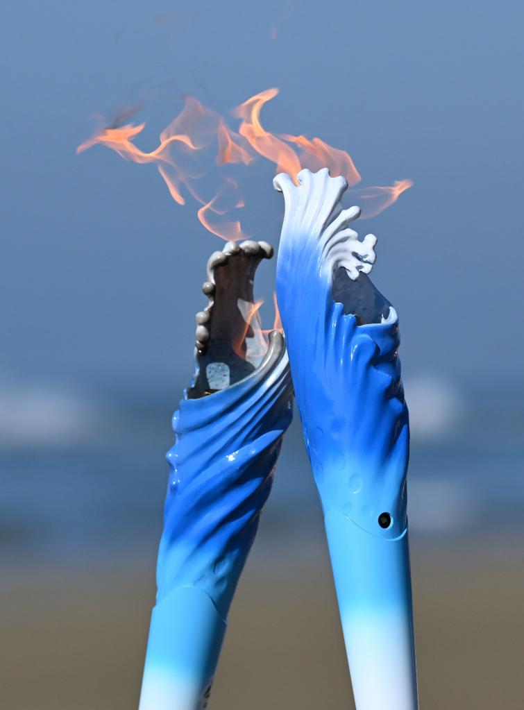 滿滿的科技感是本屆運動會的一大亮點。在此前進行的采火儀式上,以可燃冰作為燃料的火炬科技感拉滿,大放異彩。“探索二號”科考船為本屆運動會采集的可燃冰,由潛航員通過保壓取樣器采集并帶回陸地?;鹁嬖O(shè)計團隊表示,這象征科技的力量,也寓意海南自貿(mào)港發(fā)展的無限潛力。