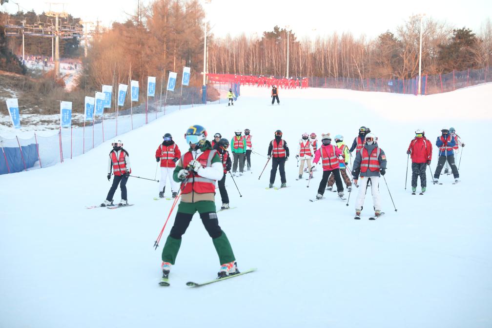 室外滑雪場上,400余名師生參加了滑雪課教學、滑雪技能展示以及長春學生滑雪錦標賽。長春冰雪新天地的冰場上,來自長春市7所學校的700余名學生開展了短道速滑、冰球等冰上競技以及抽冰尜、滑冰車等冰上游戲活動。雪地上,300余名學生參加了雪地足球、雪合戰(zhàn)、雪上拔河等運動。