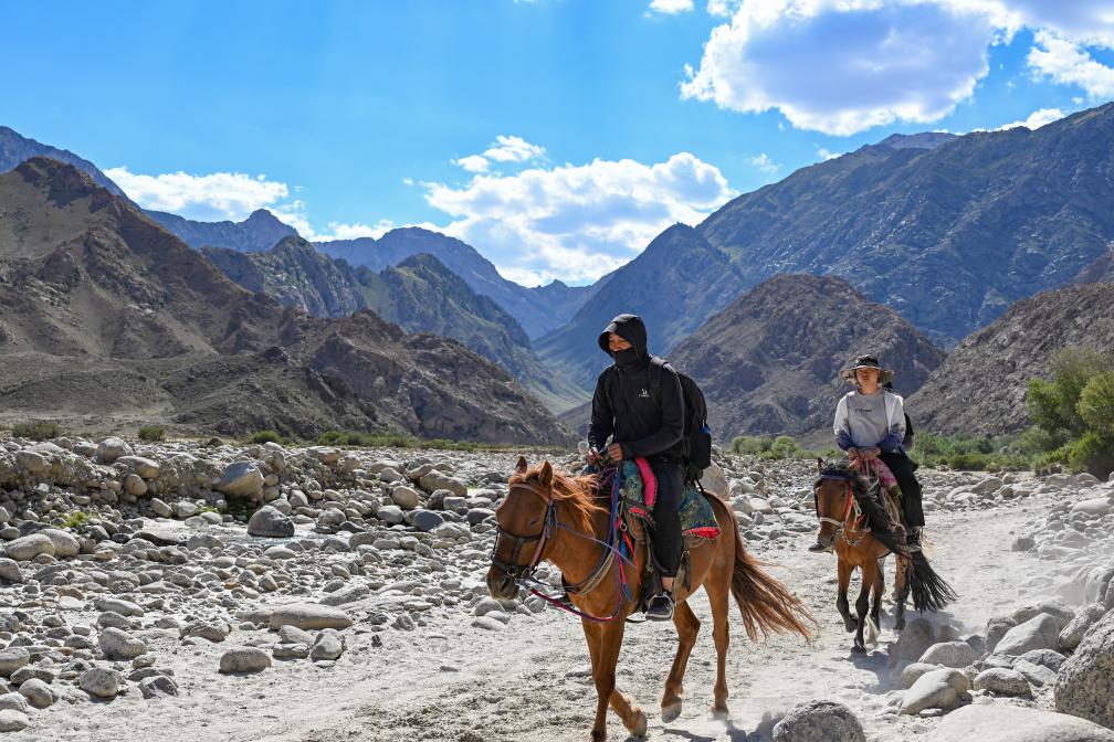 6月9日,游客騎馬進(jìn)入烏孫古道體驗。當(dāng)日,在新疆阿克蘇地區(qū)拜城縣,2024年新疆“跟著賽事去旅行”烏孫古道國際徒步露營大會啟動。新華社記者 陳朔 攝