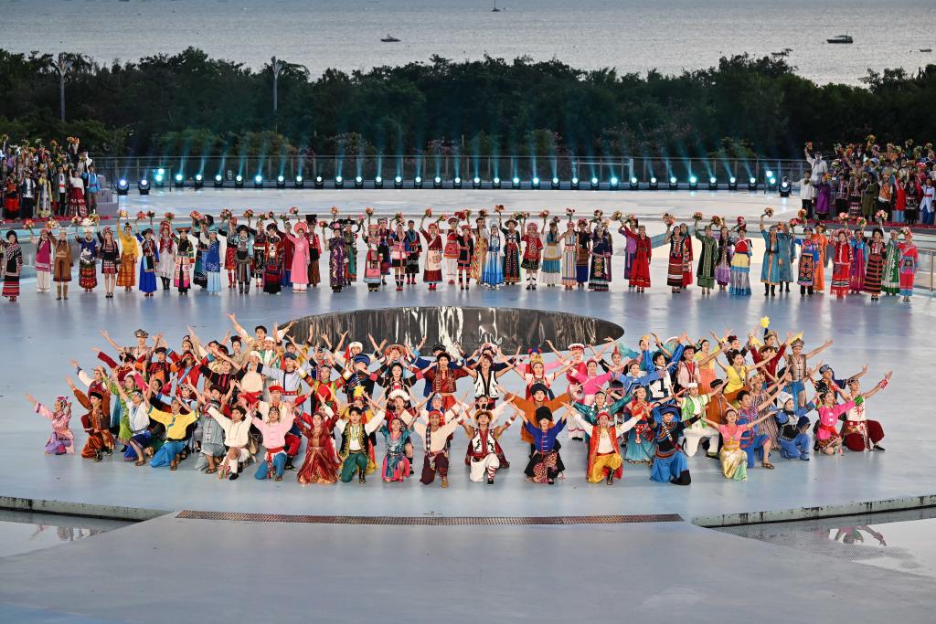 這是11月26日拍攝的聯(lián)歡晚會現(xiàn)場。當(dāng)日,第十二屆全國少數(shù)民族傳統(tǒng)體育運(yùn)動會民族大聯(lián)歡活動在海南省三亞市舉行。新華社記者 郭程 攝