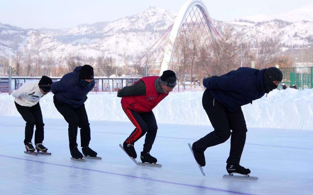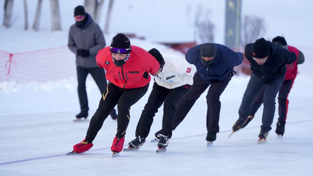 1月9日,在新疆阿勒泰市體育公園,“老飛燕”們正組隊滑行。新華社記者 張嘯誠 攝 “嗖嗖”幾聲,“小飛燕”們列著隊從“老飛燕”身邊輕快滑過。 來自黑龍江省鶴崗市冬季運動項目訓練中心的李海霞教練,正帶著小隊員們訓練。作為一名援疆干部,同時也是速度滑冰教練員,她將自己的訓練理念帶到新疆。