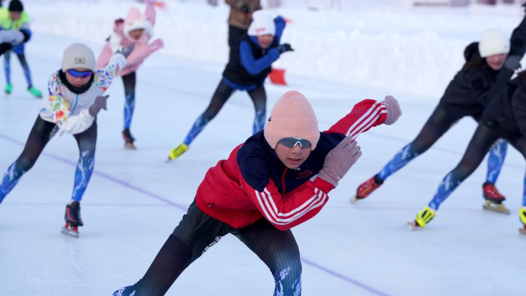 1月9日,在新疆阿勒泰市體育公園,阿勒泰市業(yè)余體校的小隊員們換上連身服開始訓練。新華社記者 張嘯誠 攝 不一會兒,一群孩子涌入冰場,他們是阿勒泰市業(yè)余體校的小運動員,年齡8到15歲不等。他們脫下厚重的棉衣,換上連身服,開始在冰面上滑行,在教練的指揮下,時而沖刺,時而慢行調整,輕快的腳步讓“老朋友們”贊嘆,“這些小孩厲害啊,比我們那會兒強多了”。