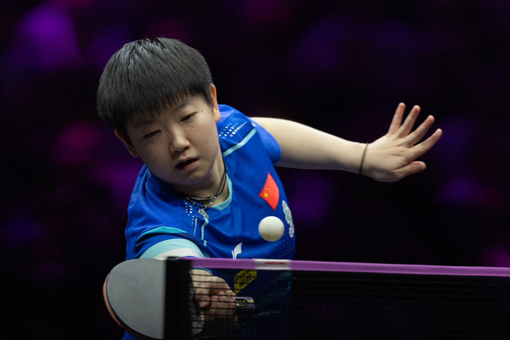 3月13日,孫穎莎在比賽中回球。新華社記者 黃偉 攝
